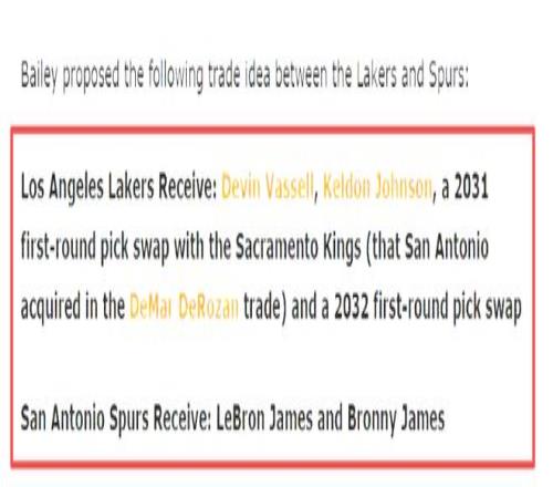 当然任何关于詹姆斯的交易设想都不得不面对一个现实问题:*他的合同中包含交易否决权。