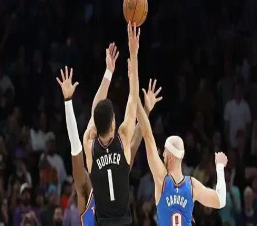双方100平时,布克突破杰威,喂罗伊斯中投,102比100反超雷霆。