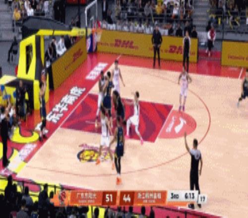 焦泊乔遭达卡里血帽,萨林杰空切轻松得手,奎因上演高难度滞空补篮连得4分;接下来焦泊乔接萨林杰内传内助攻再上分,3分42秒徐杰轻松完成1打0上篮+飚进个人第4记三分后,广东一波19-8领先来到62-46!