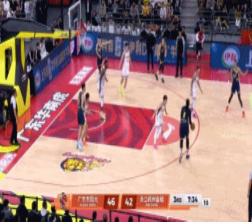 后半节广东防守有些松散,4分57秒,陈家政转换回传助攻徐杰再进三分,萨林杰送上约基奇式助攻萨姆纳空切得分,浙江这边琼斯、约克、张洪硕、约翰逊反击连得9分,浙江一波9-5将分差缩小来到40-34!